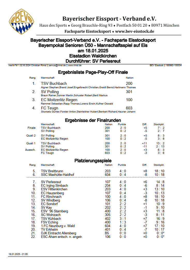 Im Finale setzte sich der TSV Buchbach gegen den SV Polling durch. Der SV Polling belegte somit einen hervorragenden 2. Platz! Mit diesem Platz qualifizierte man sich für den Deutschlandpokal Senioren Ü50 am 15.03.2025 in Regen.
